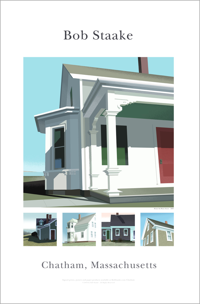 Description: Digital painting by Bob Staake of antique forms of Cape Cod architecture